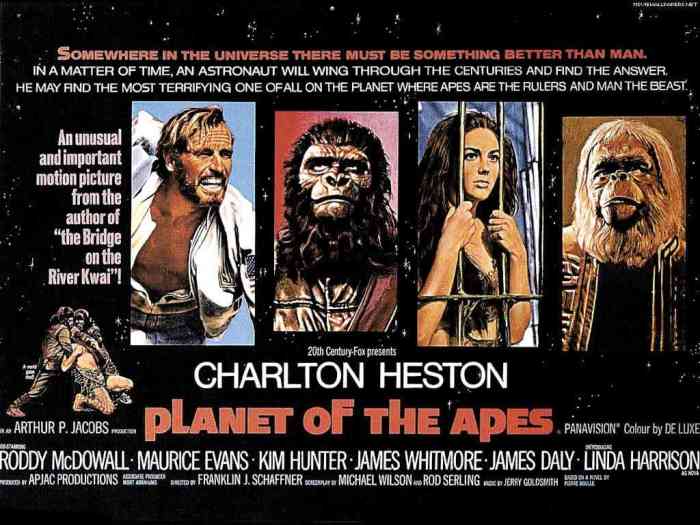 The plot is straightforward: Charlton Heston and two fellow Astronauts crash land on another planet – a “planet of the apes!”