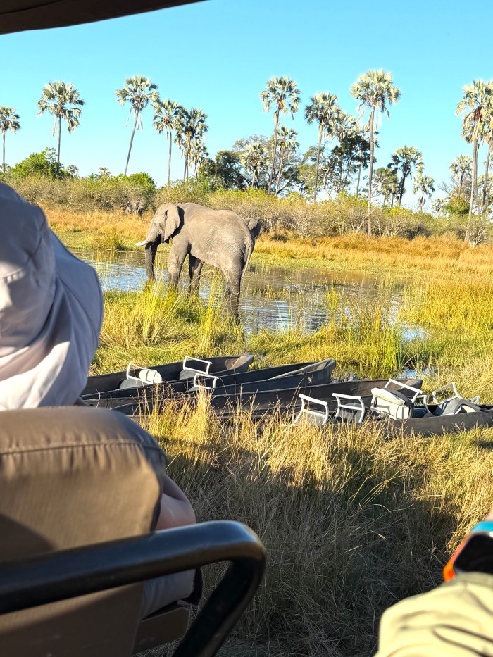 That Elephant is in “musth” – and those are our Mokoro canoes in the march in front of him. Guess who didn’t go on a canoe right that day?