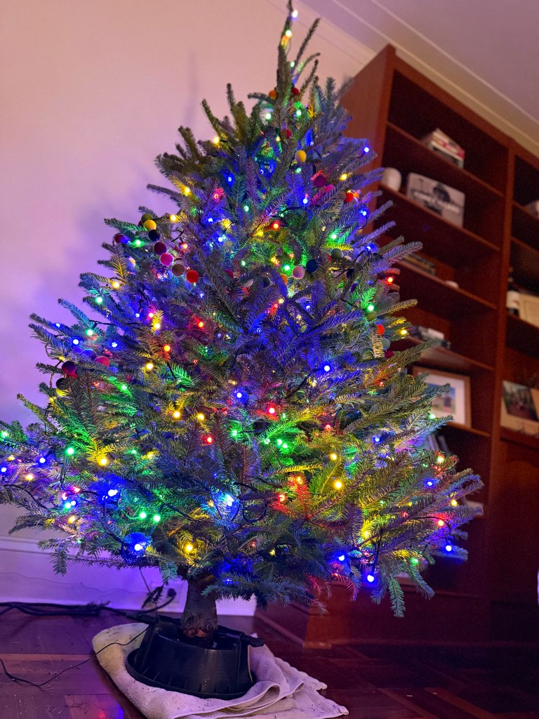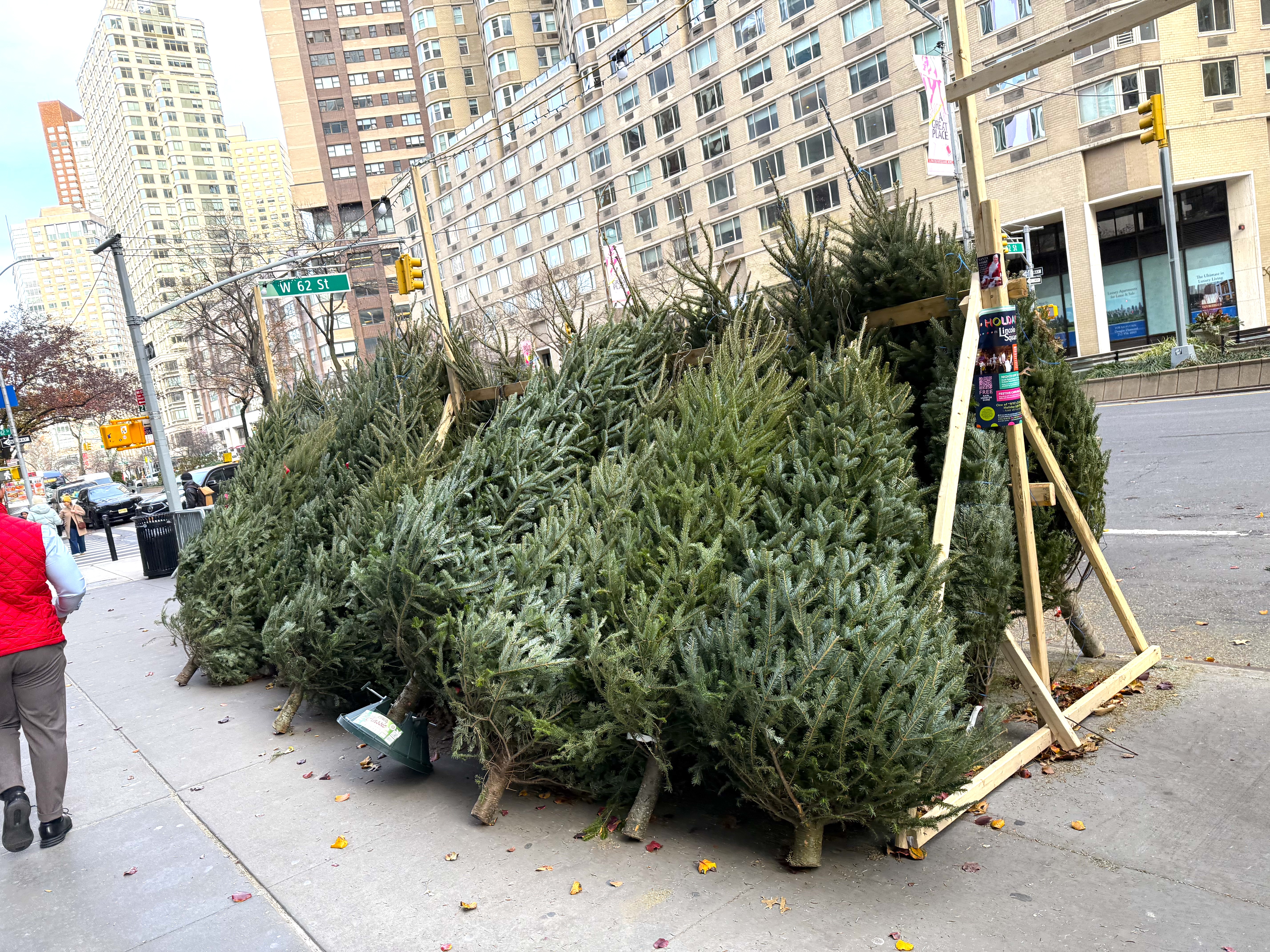 Talk about convenient! I picked out my Fraser Fir – $140 – and carried it two blocks to our apartment, then Alex took over and started dressing it up: