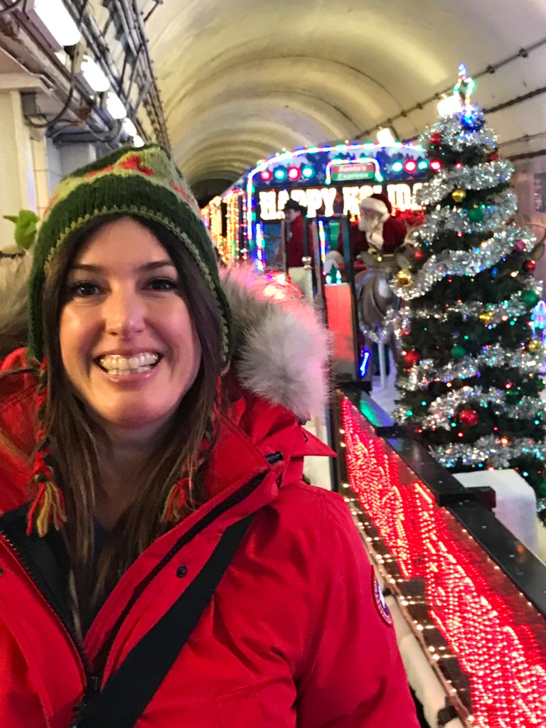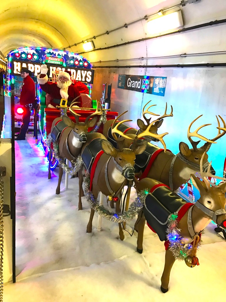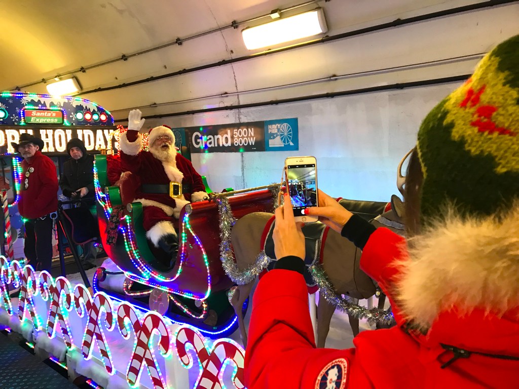 That’s my wife Alex welcoming Santa to the train station! You see, a specially dressed train goes all over town with Santa and his reindeer leading the way!
