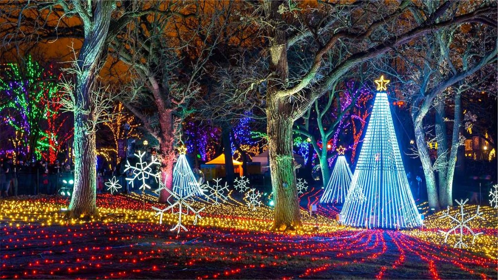 Chicago’s Lincoln Park Zoo also lights up for the holidays…but it’s all about one big event: the arrival of Santa Claus by Chicago subway train!
