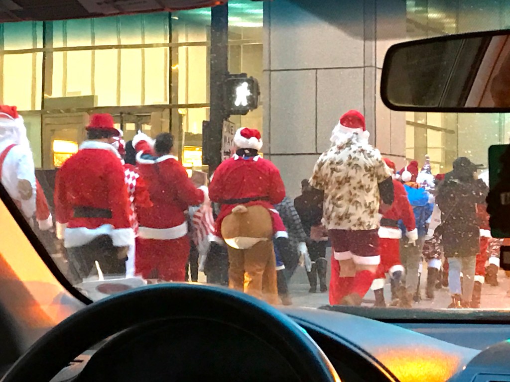 Chicago really embraces the holiday. Apparently there was a Santa convention when we were in a cab once, because I caught a few of them pounding the pavement: