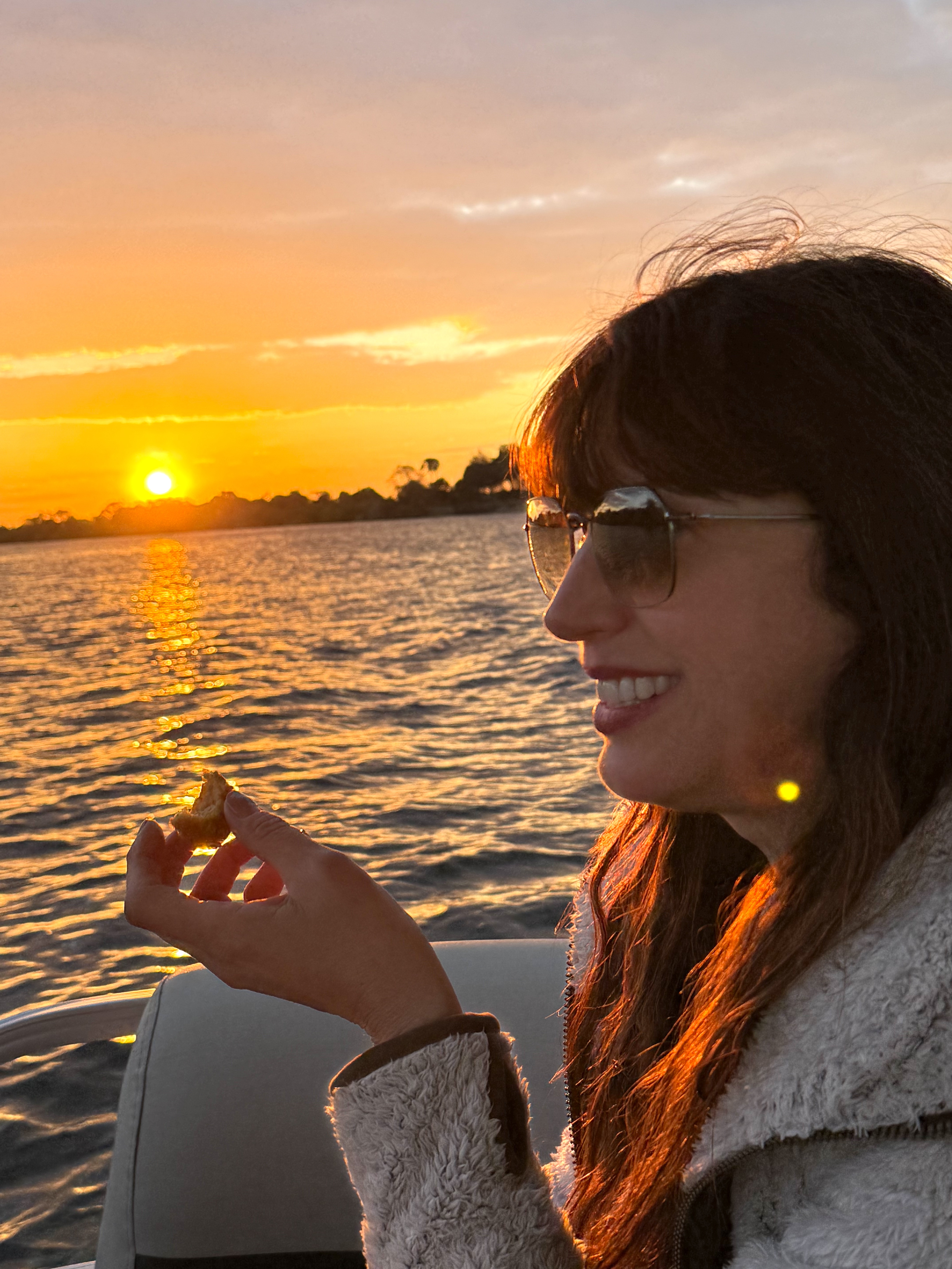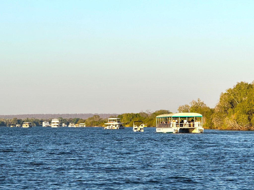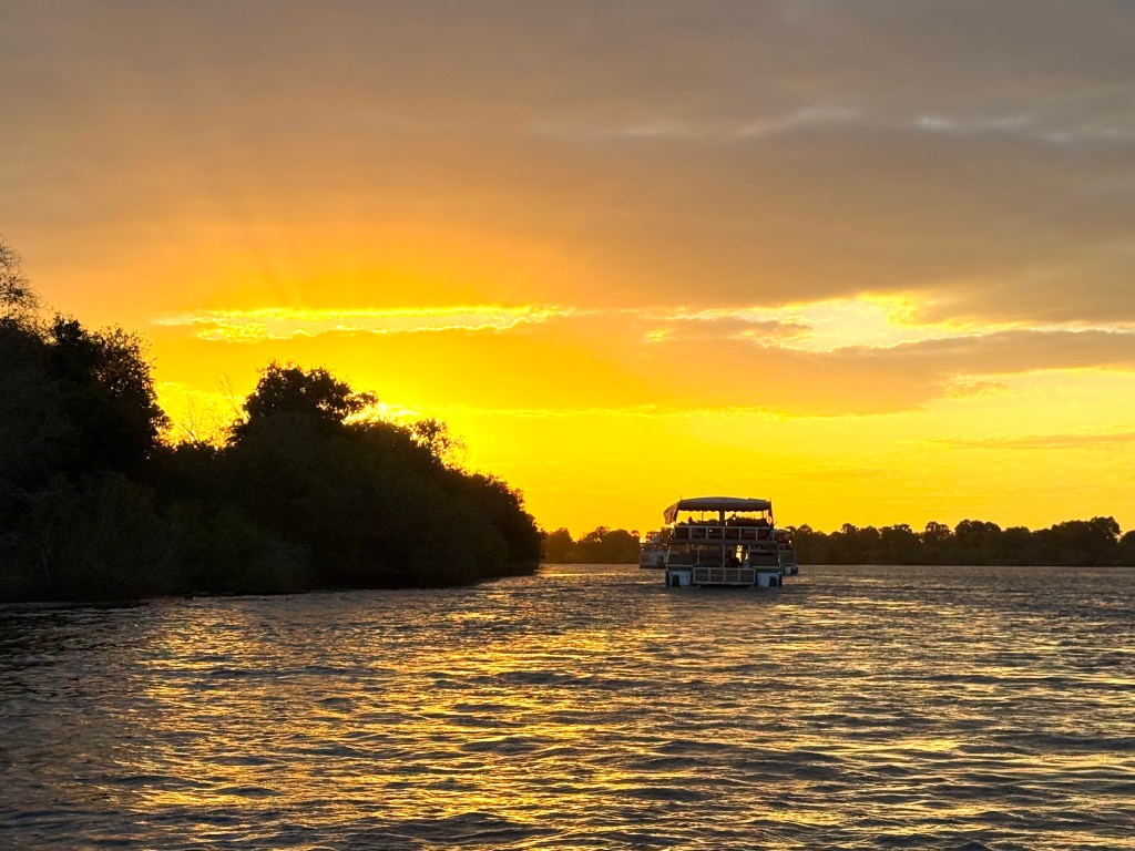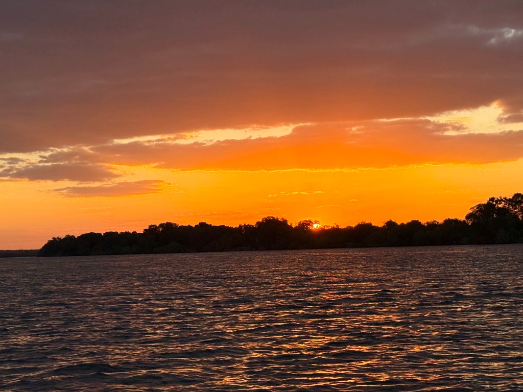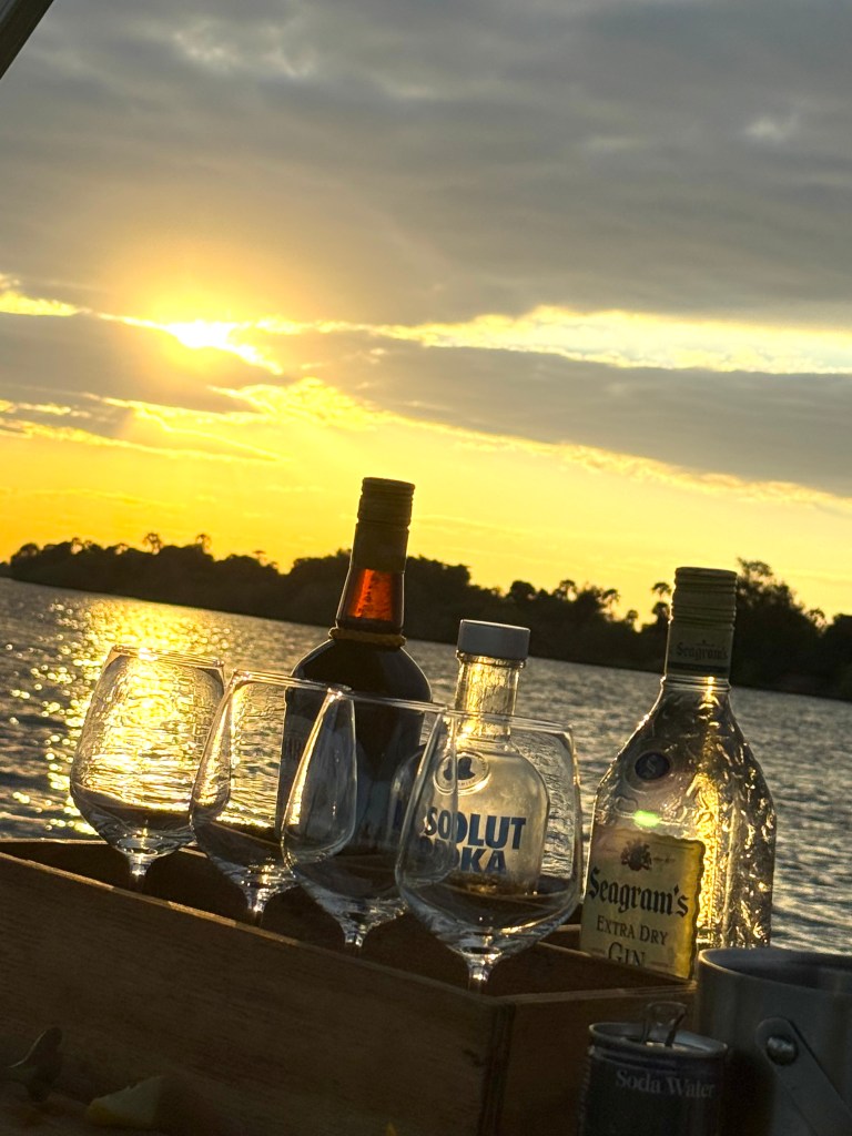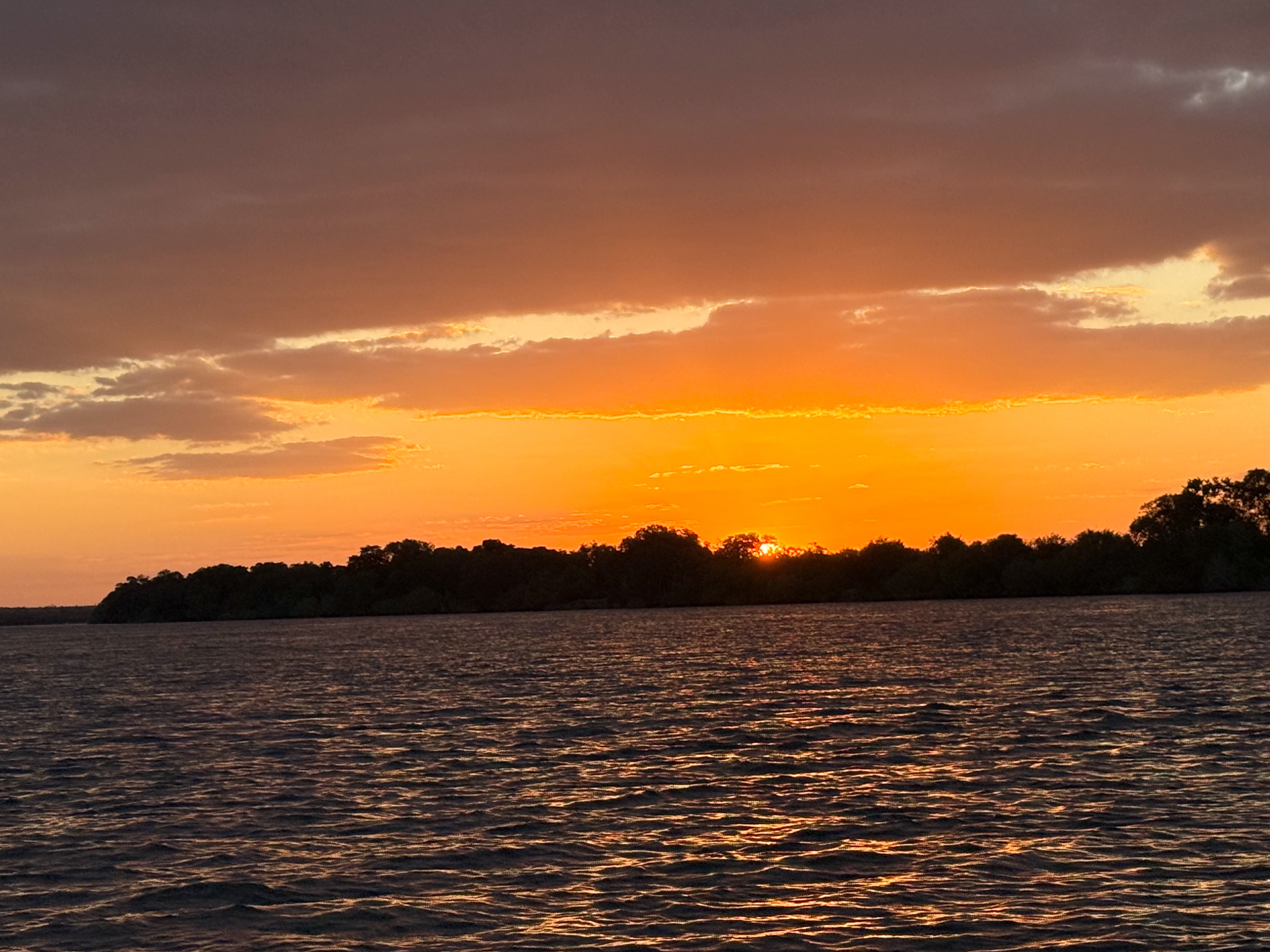 Yes, we were joined on the river by a local Crocodile on the day we headed out for a “sundowner”, the best way to see the sun set on the river – and both countries!