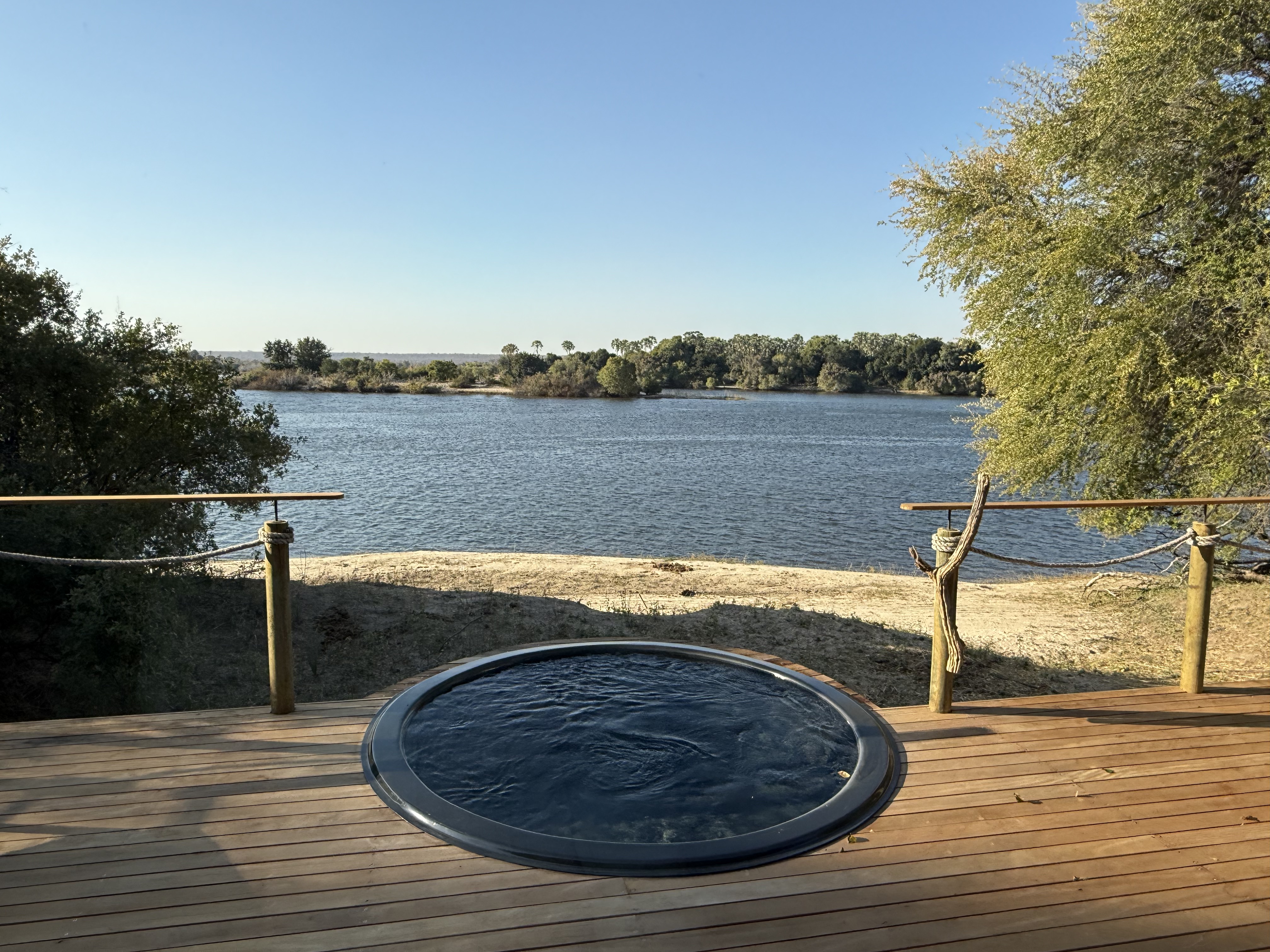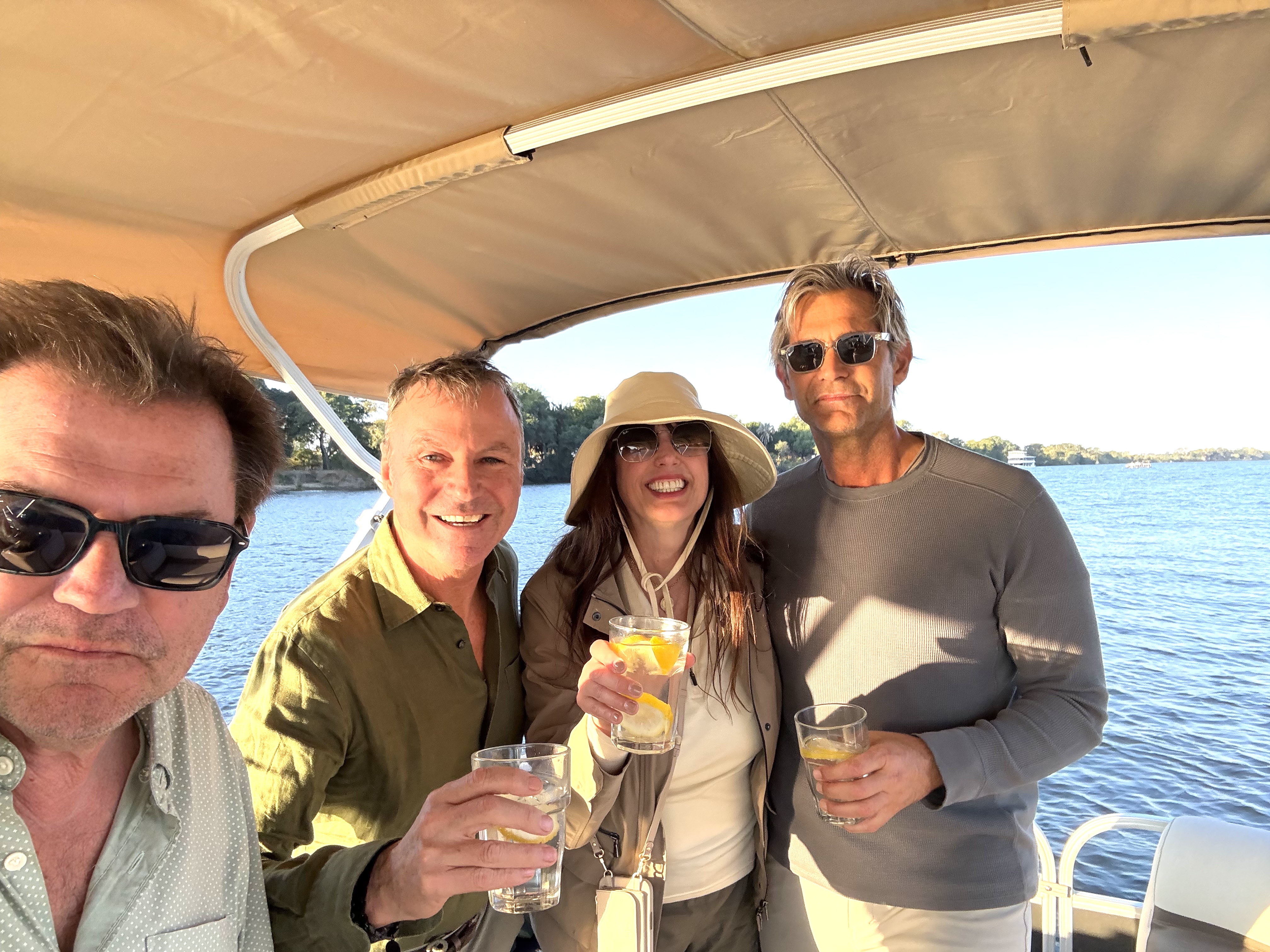 This is the view from our room at the lodge: with a breathtaking view of the river – looking from our Zimbabwe side of the river toward Zambia – and one night, we were joined by our friends Colin Cowie and Danny Peuscovich for a “sundowner” river cruise!