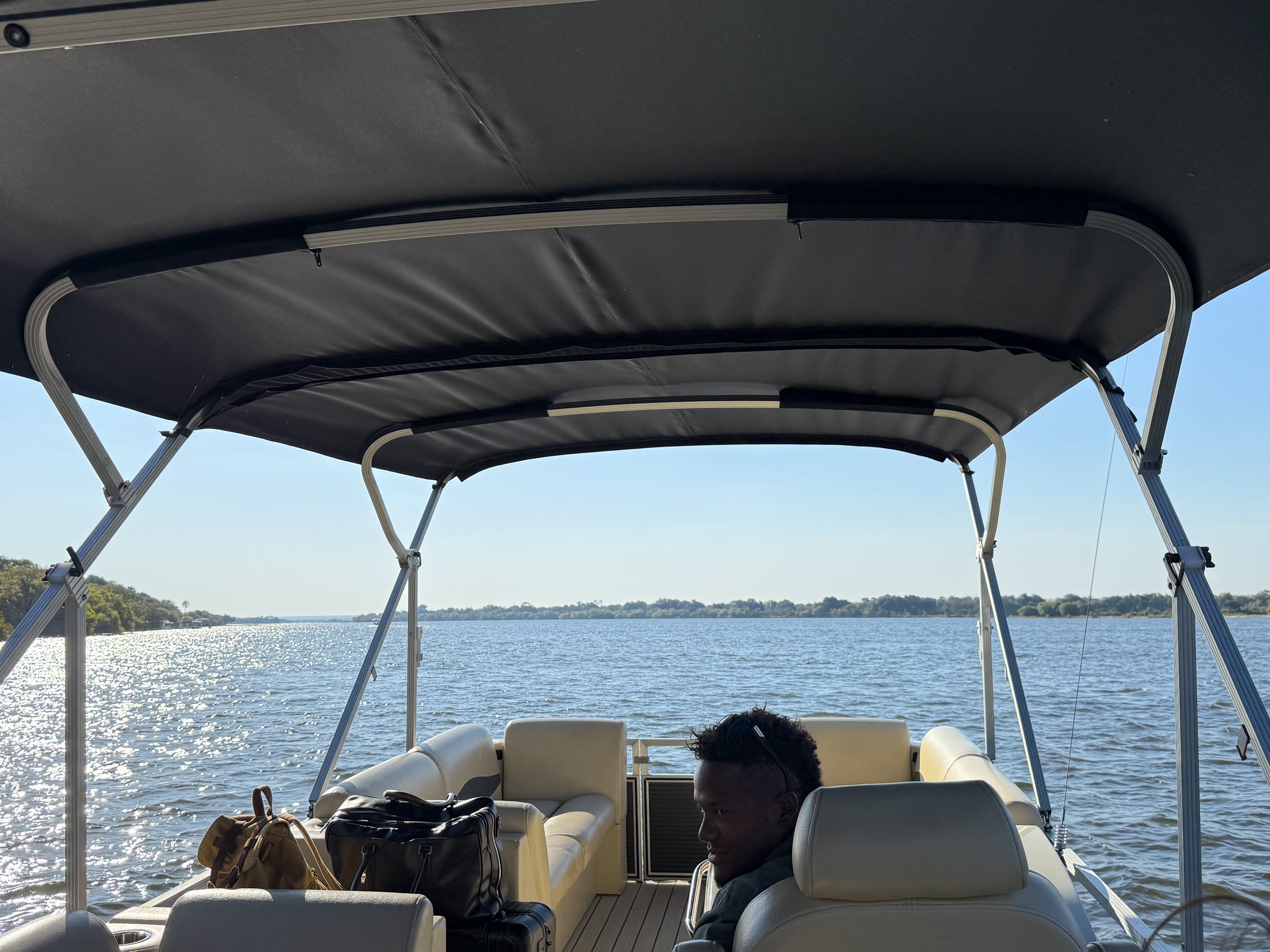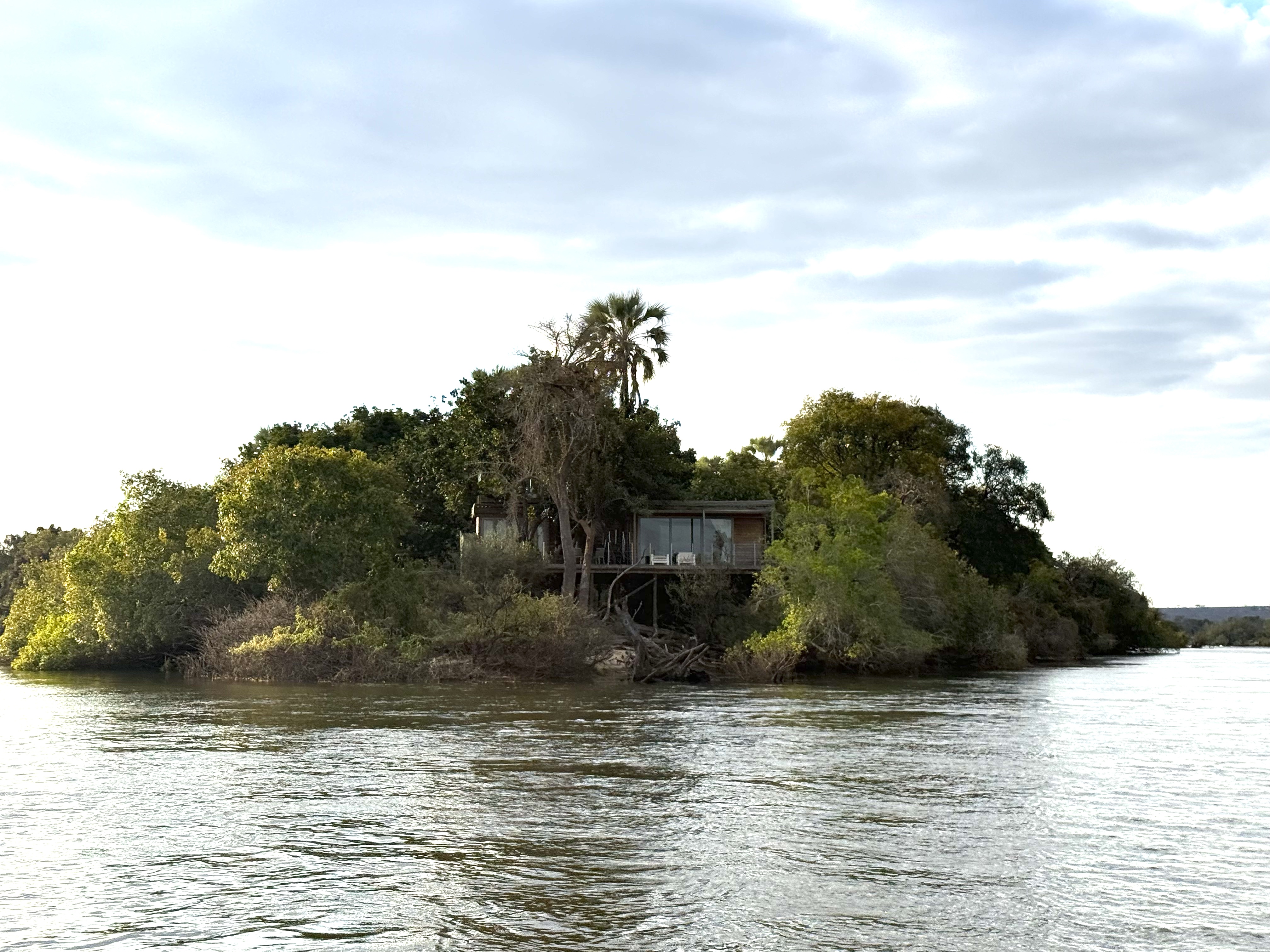 We headed out onto the Zambezi river to head toward the Zambia shoreline, first passing a private guesthouse on a small island in the middle of the river: