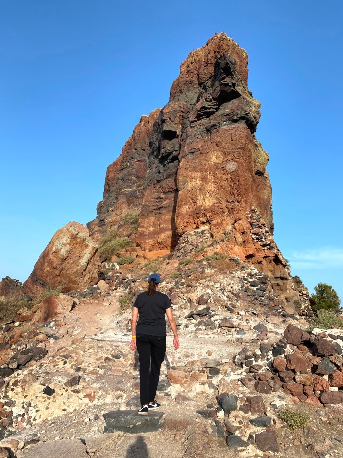 Of course, after Mykonos we also had an amazing visit to the island of Santorini as well, where we actually climbed this: