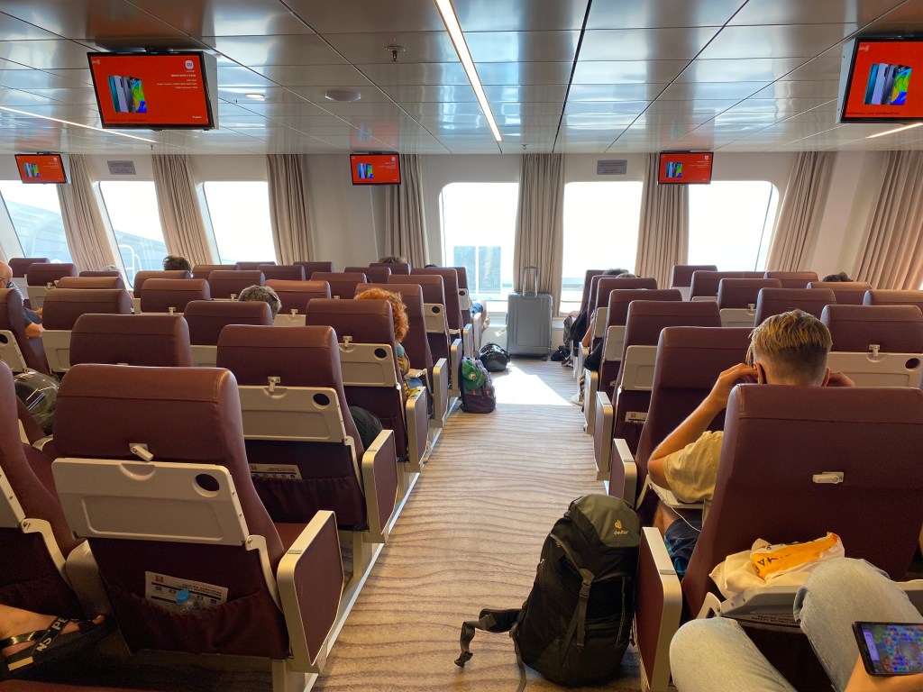 First of all, you only have to arrive 15 minutes before departure – it’s a breeze to board, you can stow your bags at the entrance, and you find a seat and relax…